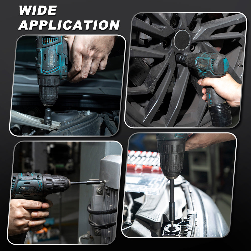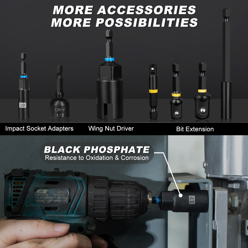 COMPLETE IMPACT-READY SET - This all-in-one 34-piece set is equipped with 3 impact socket adapters (1/4", 3/8", 1/2"), a 6-inch bit extension, and a 17mm wing nut driver, offering complete compatibility with all pneumatic and electric impact wrenches, drill drivers, and ratchets for maximum utility.