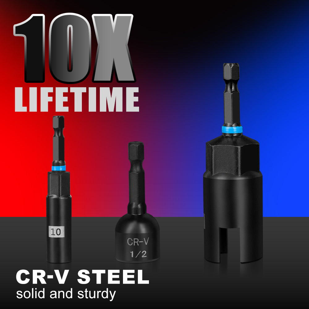 INDUSTRY-GRADE DURABILITY - Forged from hardened Chrome Vanadium steel (Cr-V) and treated with a wear-resistant black oxide coating, these impact sockets are built to withstand high torque and repetitive use in demanding environments, ensuring long-lasting performance and corrosion resistance.
