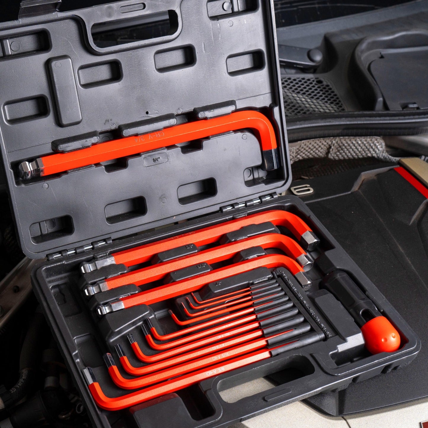 PORTABLE & ORGANIZED STORAGE - All components are securely housed in a custom, heavy-duty plastic case with a clear lid and firmly fitted socket holders. This ensures easy identification, tidy organization, and safe transport, making it an ideal and professional toolkit for mobile mechanics and workshop use.