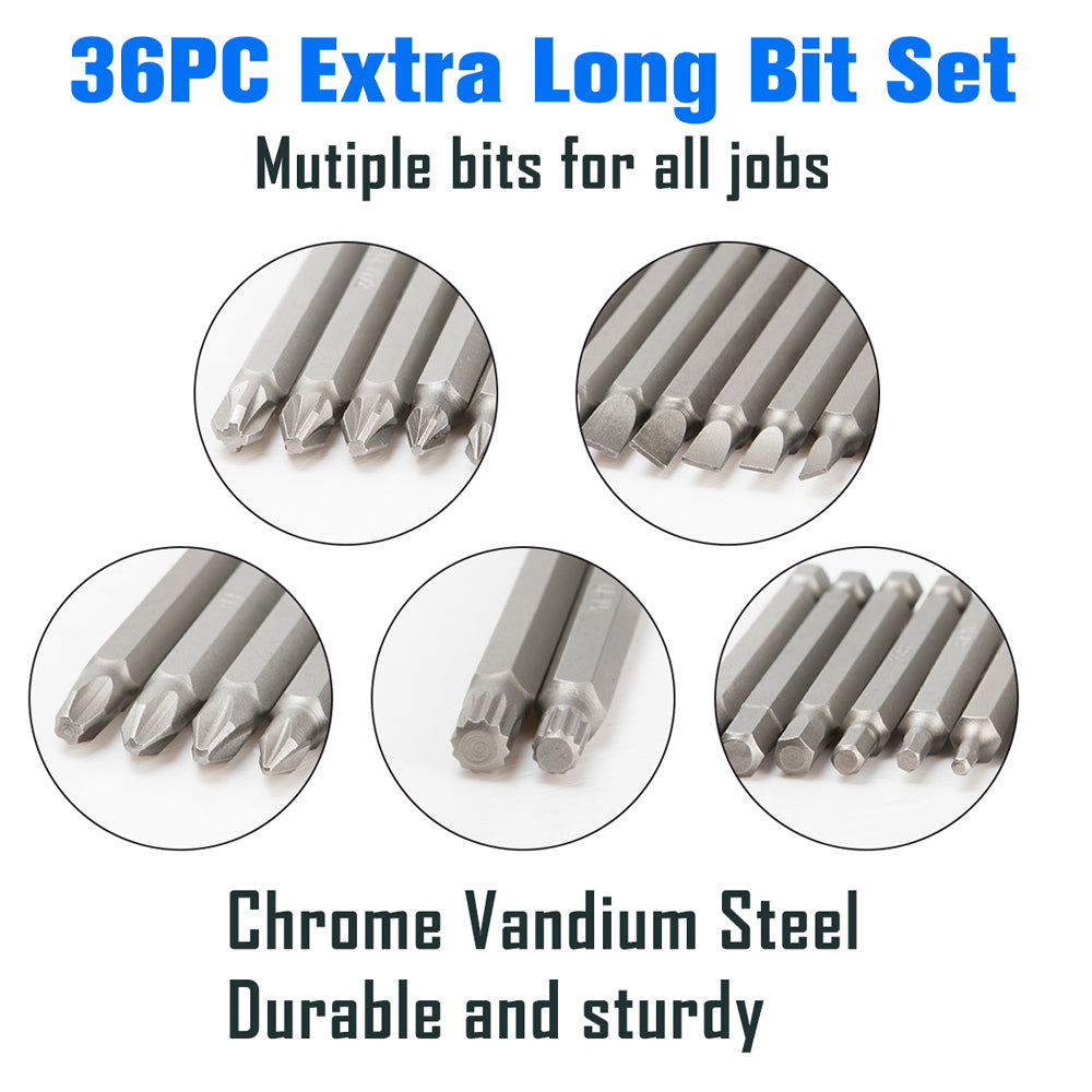 Regular price $13.99Multi Bit Set - 36pcs: Pozi, Phillips, Flat, Torx, Hex, Square Bits in a variety of sizes.