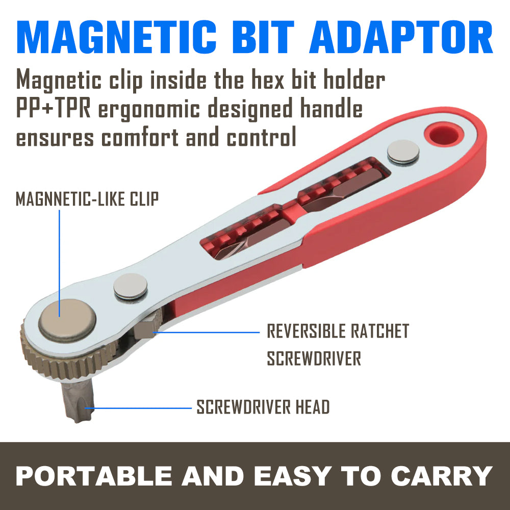 Magnetic Bit Adaptor: The miniature pocket size close-quarters bit driver has magnetic clip inside the hex bit holder, help to keep the inserted bit tight in position for higher torque. With 2 shorter bits stored in the handle, this tool can be used in even tighter places.