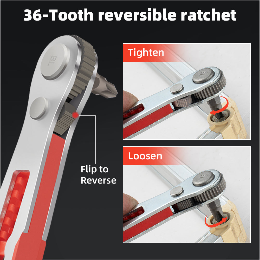 - Efficient Ratcheting Mechanism: This 36 tooth right angle screwdriver offers seamless bi-directional ratchet, making it easy to tighten and loosen screws.