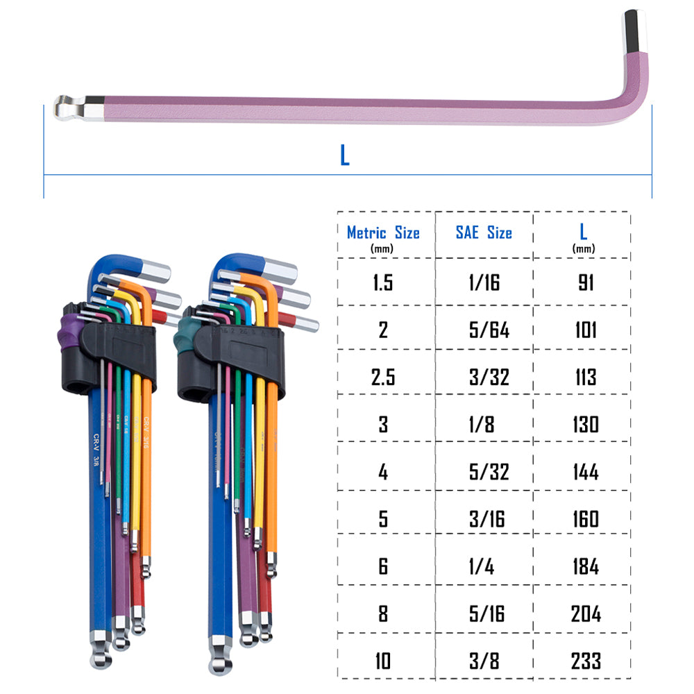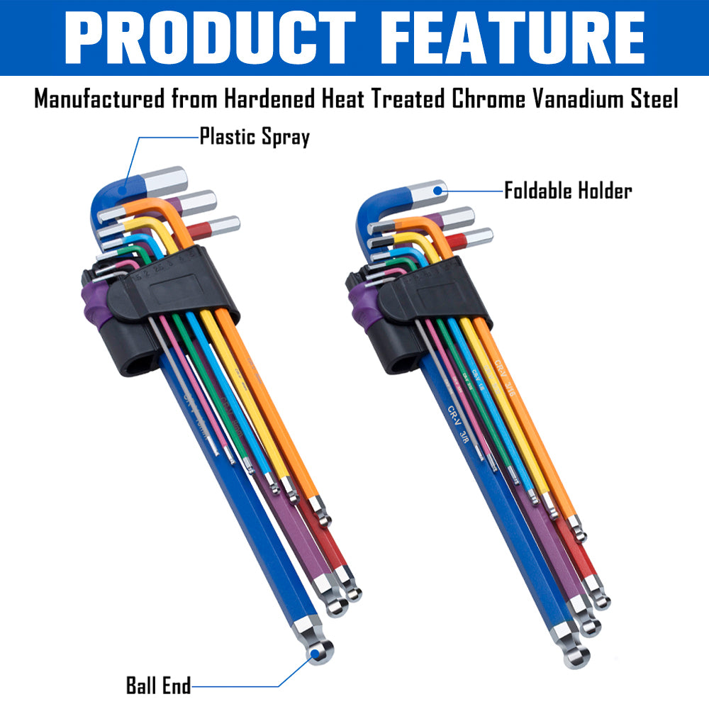 18pc Extra Long Hex Key Set-ROTATION