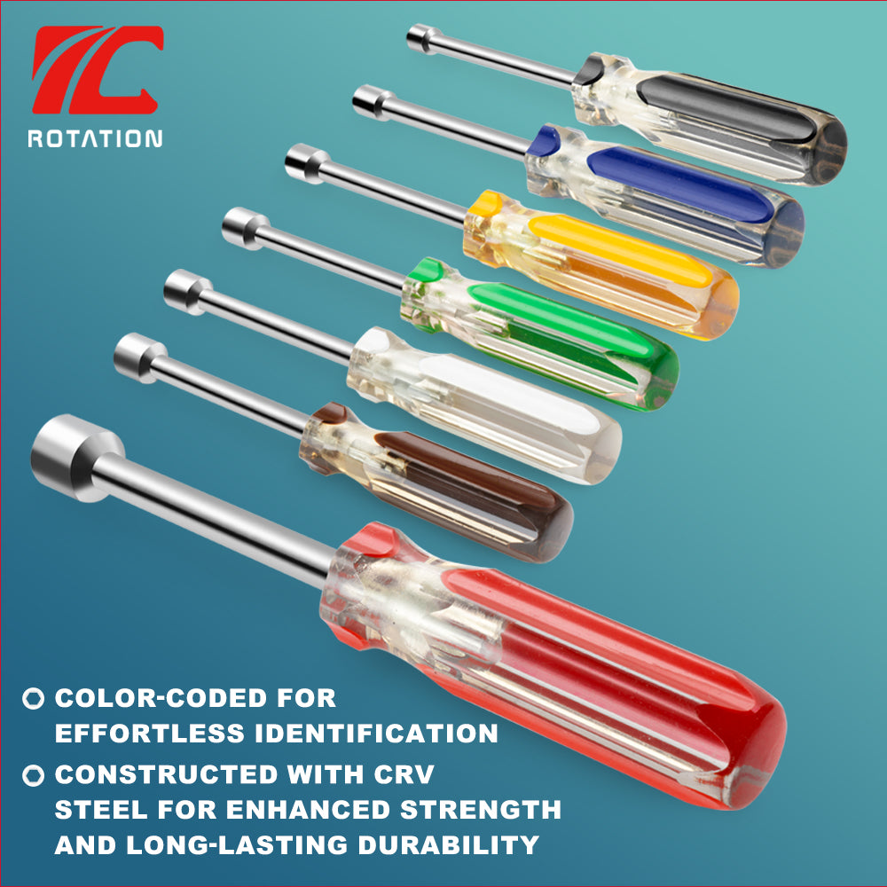 - Easy Identification: color coding on handles can quickly identify nut driver size.