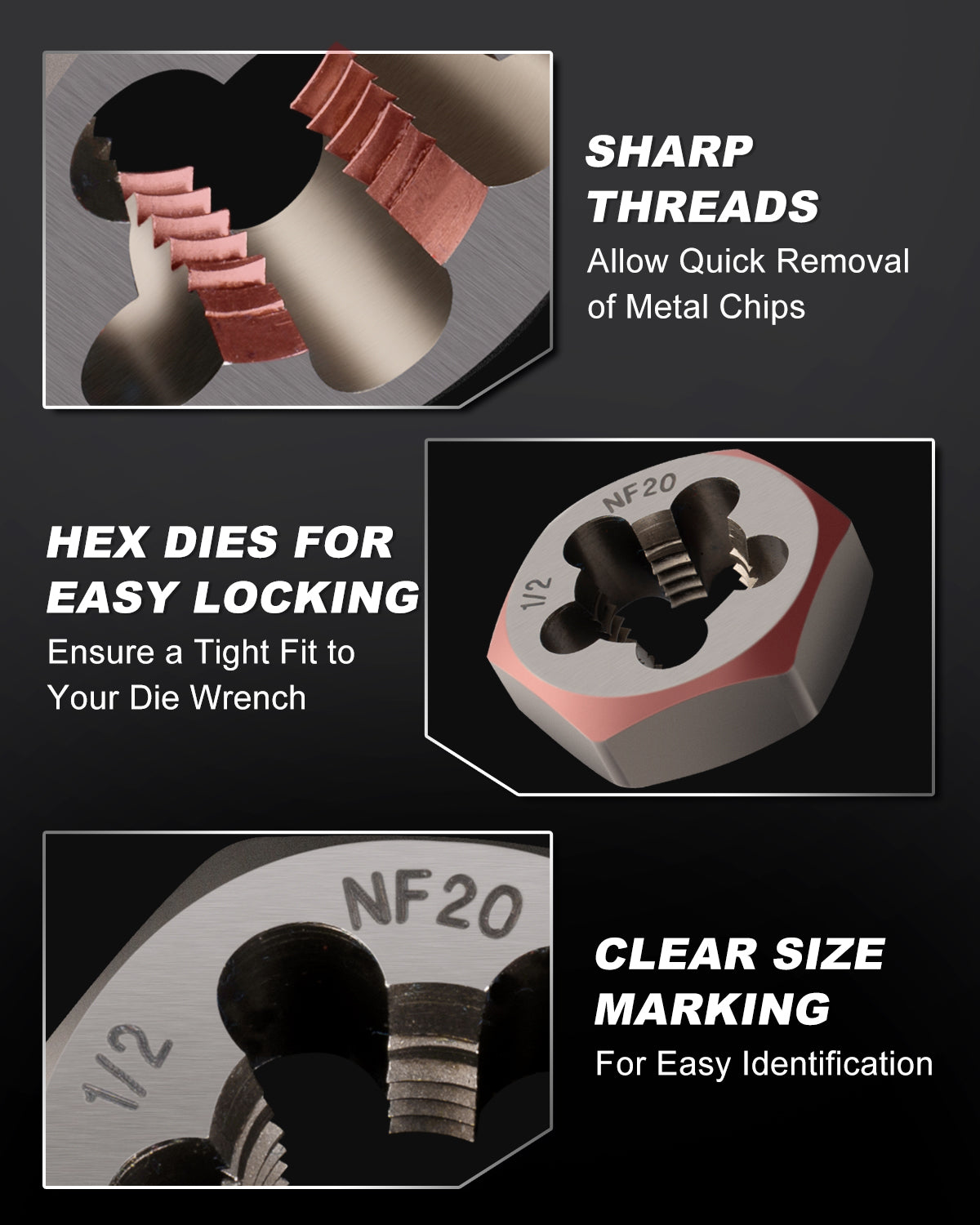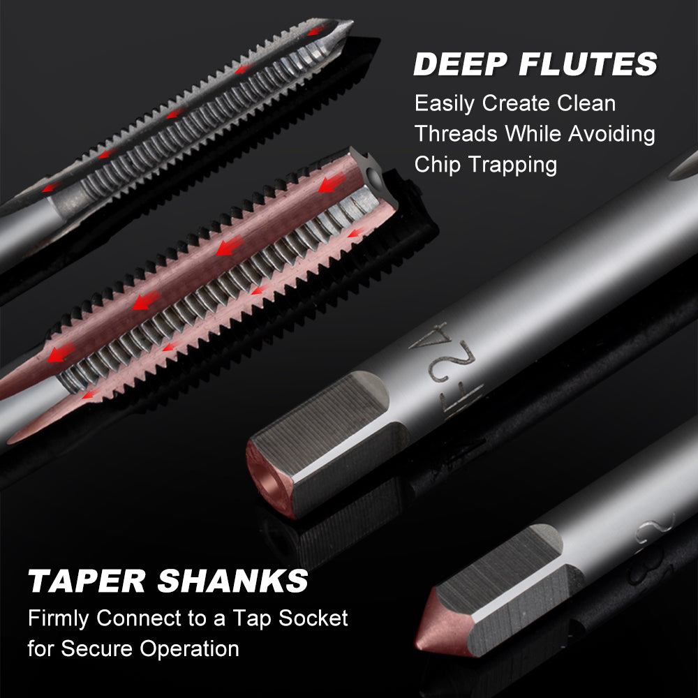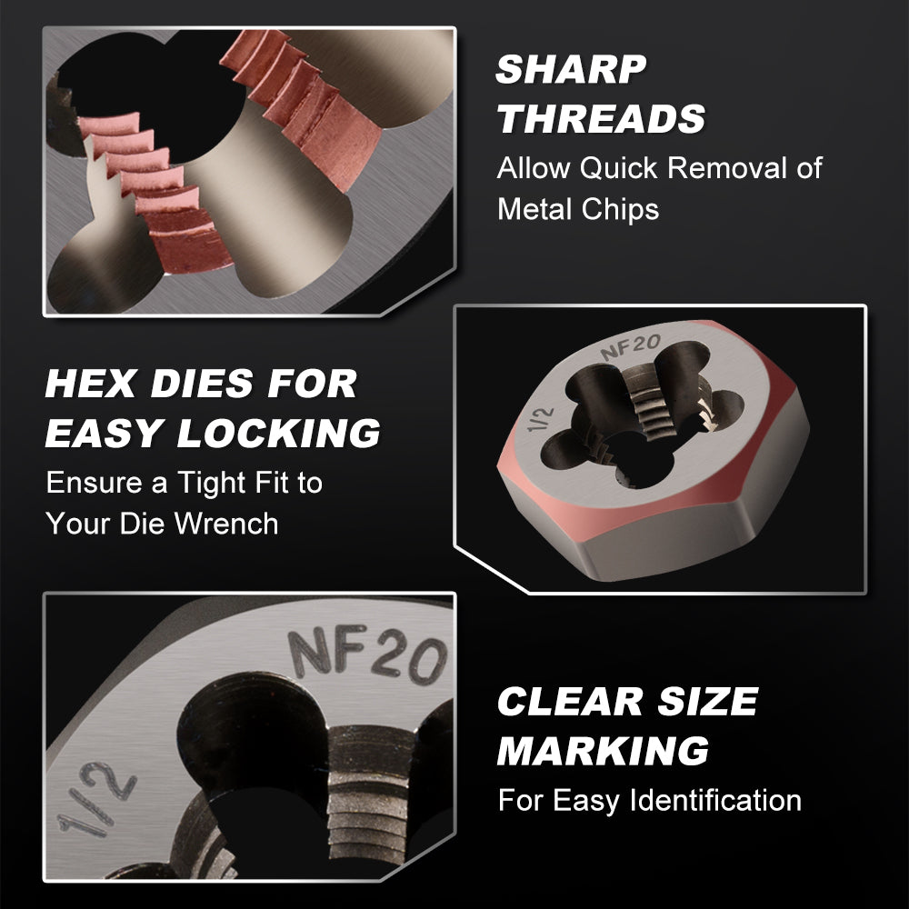 - INDUSTRY-LEADING CHROME VANADIUM STEEL: Manufactured from hardened and heat-treated chrome vanadium steel, our taps and dies provide exceptional toughness and wear resistance. This ensures clean, precise threads in steel, iron, aluminum, and brass without breaking, offering long-lasting performance.