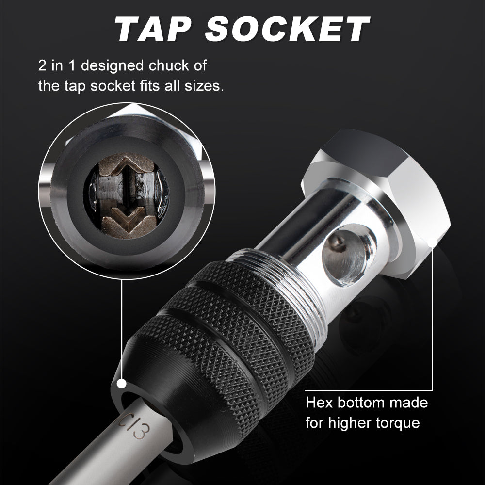 - PROFESSIONAL-GRADE ACCESSORIES FOR EASE OF USE: The set comes with a hex die stock, tap socket, and tap socket bar for effortless hand use or powerful integration with a 1/2" drive ratchet. It also includes an SAE thread pitch gauge for precise size identification and a flathead screwdriver, covering all your threading task essentials.